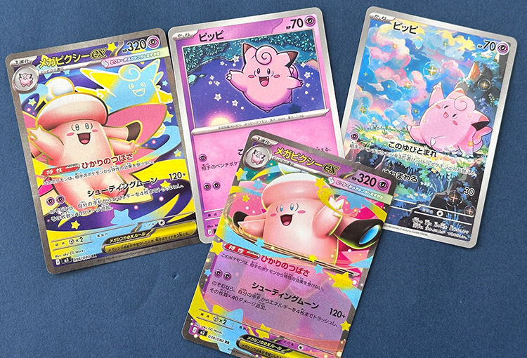 ムニキスゼロ開封しました! 2026年04月17日 ムニキスゼロ開封しました! ご注文後開封の【ポケパッド】のために、ムニキスゼロを開封しました。 ・・・・開封の結果はどうだったかというと・・・・ かわいいカードがたくさん出ました🥰 開封しながらウキウキ🎵 「ピッピ進化セット」が出ましたよ~! 在庫にも入れたので、チェックしてみて下さいね✨ ニャースexも人気!! 次» お知らせ