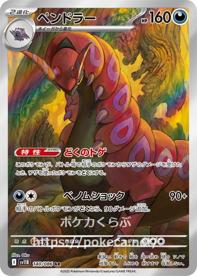 このポケモンが、バトル場で相手のポケモンからワザのダメージを受けたとき、ワザを使ったポケモンをどくにする。ベノムショック 悪無 90+