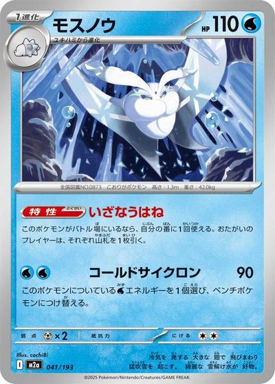このポケモンがバトル場にいるなら、自分の番に1回使える。おたがいのプレイヤーは、それぞれ山札を1枚引く。コールドサイクロン 水水 90