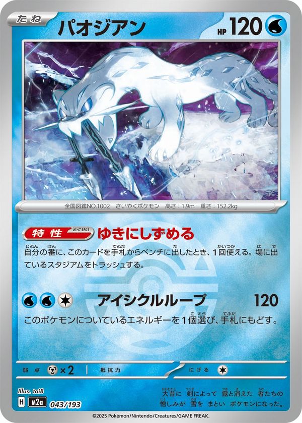 自分の番に、このカードを手札からベンチに出したとき、1回使える。場に出ているスタジアムをトラッシュする。アイシクルループ 水水無 120