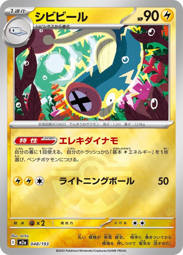 自分の番に1回使える。自分のトラッシュから「基本雷エネルギー」を1枚選び、ベンチポケモンにつける。ライトニングボール 雷雷無 50