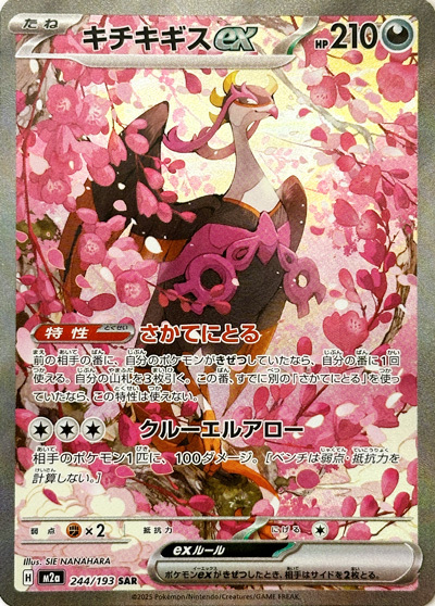 前の相手の番に、自分のポケモンがきぜつしていたなら、自分の番に1回使える。自分の山札を3枚引く。この番、すでに別の「さかてにとる」を使っていたなら、この特性は使えない。クルーエルアロー 無無無