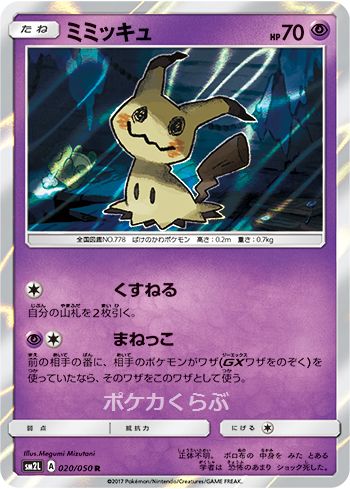 前の相手の番に、相手のポケモンがワザ(GXワザをのぞく)を使っていたなら、そのワザをこのワザとして使う。弱点 - 抵抗力 - 逃げる 1
